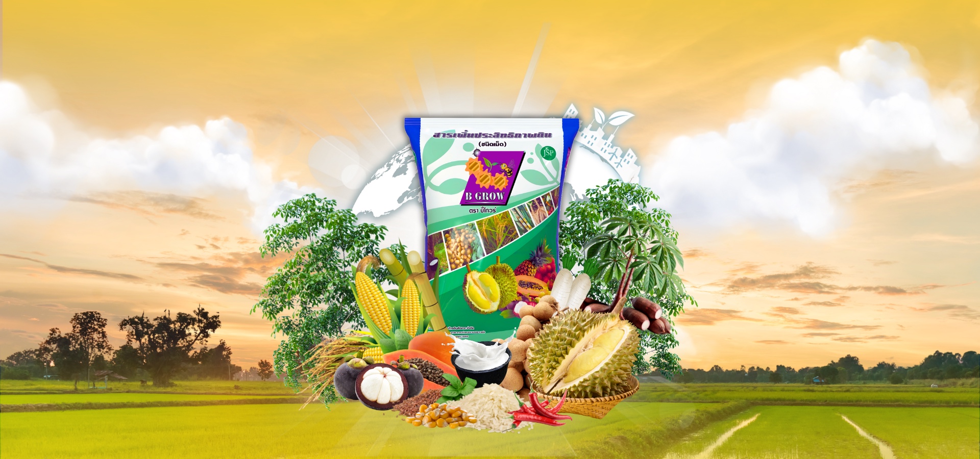 บริษัท เจเอสพี อะโกรอินดัสเทค จำกัด ดำเนินธุรกิจจำหน่ายอาหารเสริมพืช สารจับใบ และวัสดุปรับปรุงสภาพดินที่มีคุณภาพสูง รวมทั้งผลิตอาหารเสริมสุขภาพ ความสวยความงาม อาหารอุปโภคบริโภค กาแฟและเครื่องดื่ม ฯลฯเรามีการวิจัย พัฒนา คิดค้น คัดสรร นำเข้าวัตถุดิบใหม่ ๆ จากต่างประเทศ มีการพัฒนาเทคโนโลยีการผลิตอย่างต่อเนื่อง ใช้เทคโนโลยีชีวภาพสมัยใหม่มาช่วยแก้ปัญหาอย่างตรงจุดช่วยให้เกษตรกรสามารถลดต้นทุน ลดการใช้ปุ๋ยเคมี และเพิ่มผลผลิต